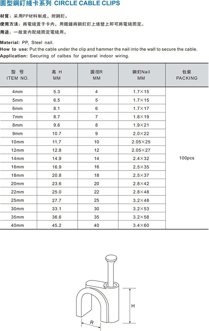 圆型钢钉线卡系列